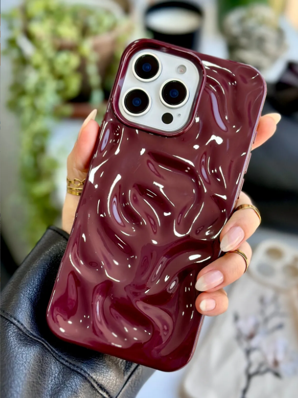 Iphone 16 Promax Uyumlu 3d Kabartma Parlak Bordo Silikon Kılıf